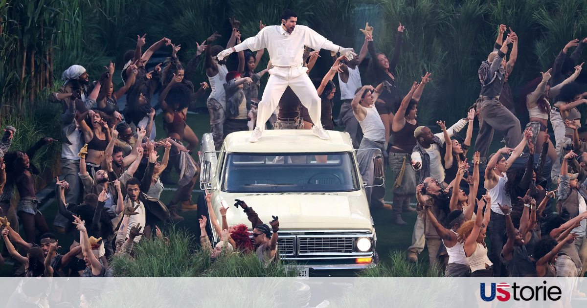 Bad Bunny performed mostly in Spanish a first in the nearly 60-year history of Super Bowl halftime performances and filled the stage with imagery drawn from Puerto Rican life. The set featured sugar cane fields, models of bodegas and neighborhood bars, vibrant scenes of community life, and even a real wedding.
